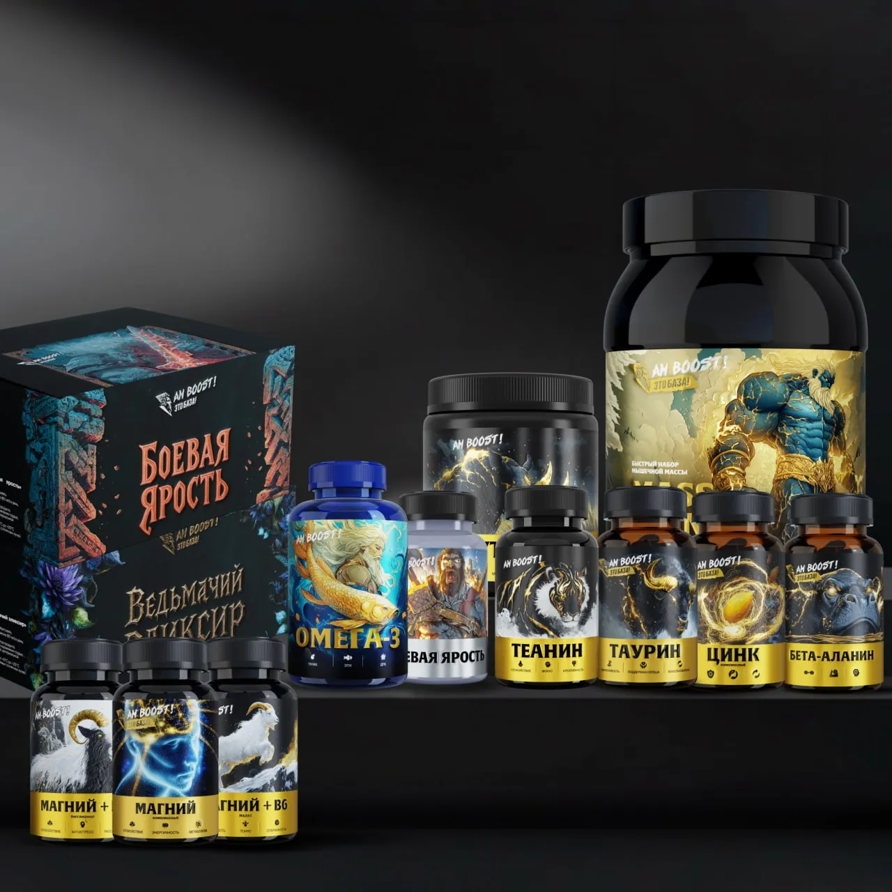 «Боевая Ярость» — флагман среди стимулирующих продуктов AM BOOST. В отличие от обычных предтренеров на чистом кофеине, формула построена на синергии стимуляторов и аминокислот. Эффект мягче, длиннее, без джиттера, без тремора и без отката через два часа. Доступна в виде порошка и в формате готовых шотов «Боевая Ярость Шоты» — открыл и пошёл. Параллельно есть восстановительный продукт — «Ведьмачий Эликсир», безалкогольный напиток на адаптогенах и травах.